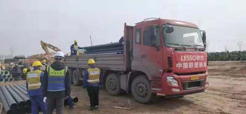 中國聯塑火速裝運管道發往西安“小湯山”醫院工地現場