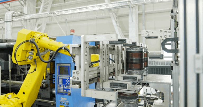 而這些優(yōu)點的實現全都得益于電熱熔管件的自動化生產模式。在聯塑 PE 電熱熔管件生產車間內配有 23 條 PE 電熱熔管件自動化生產單元,從供料到生產成品都實現了全自動化。就連生產過程中最重要的“注塑”環(huán)節(jié),也完全是由機械臂、數字化設備實現的。
